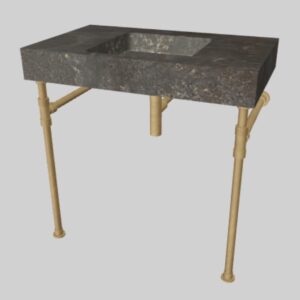 Stone Forest STONE FOREST TD-THN-FCT-AGL/PFT-ST-AB VENTUS BATH SINK WITH FAUCET DECK PAIRED WITH ELEMENTAL FACET VANITY LEGS. 36" TERRA (TD-TRR), ANTIQUE GRAY LIMESTONE (AGL),FAUCET HOLES 3 (DRILL 3h),STAND WITH 36", STAND FINISH AGED BRASS (AB). FITTINGS -CLASSIC,DRAIN 9054D-PFSAB,TRAP-256-KNAB
